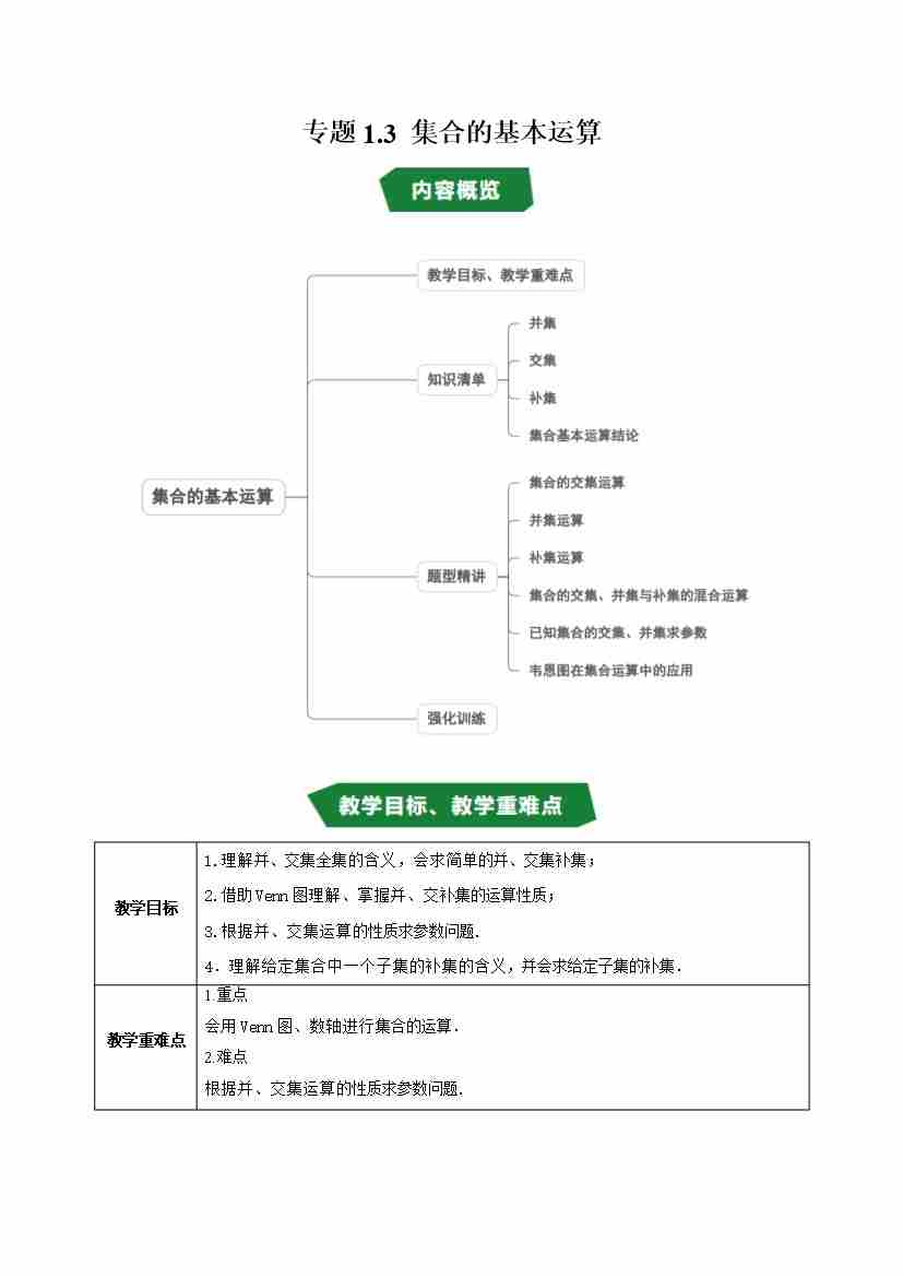 专题1.3 集合的基本运算(高效培优讲义)(学生版)