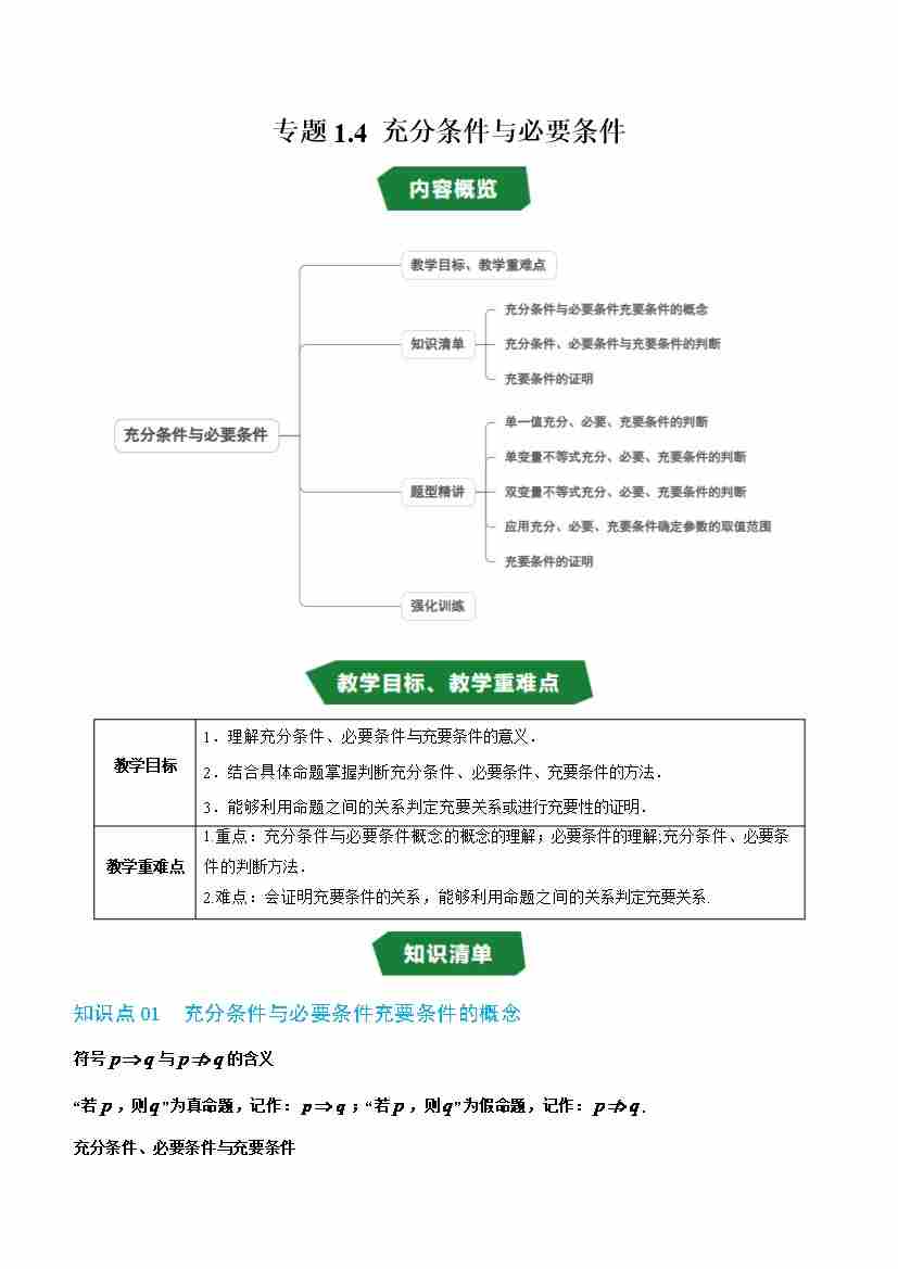 专题1.4 充分条件与必要条件(高效培优讲义)(学生版)