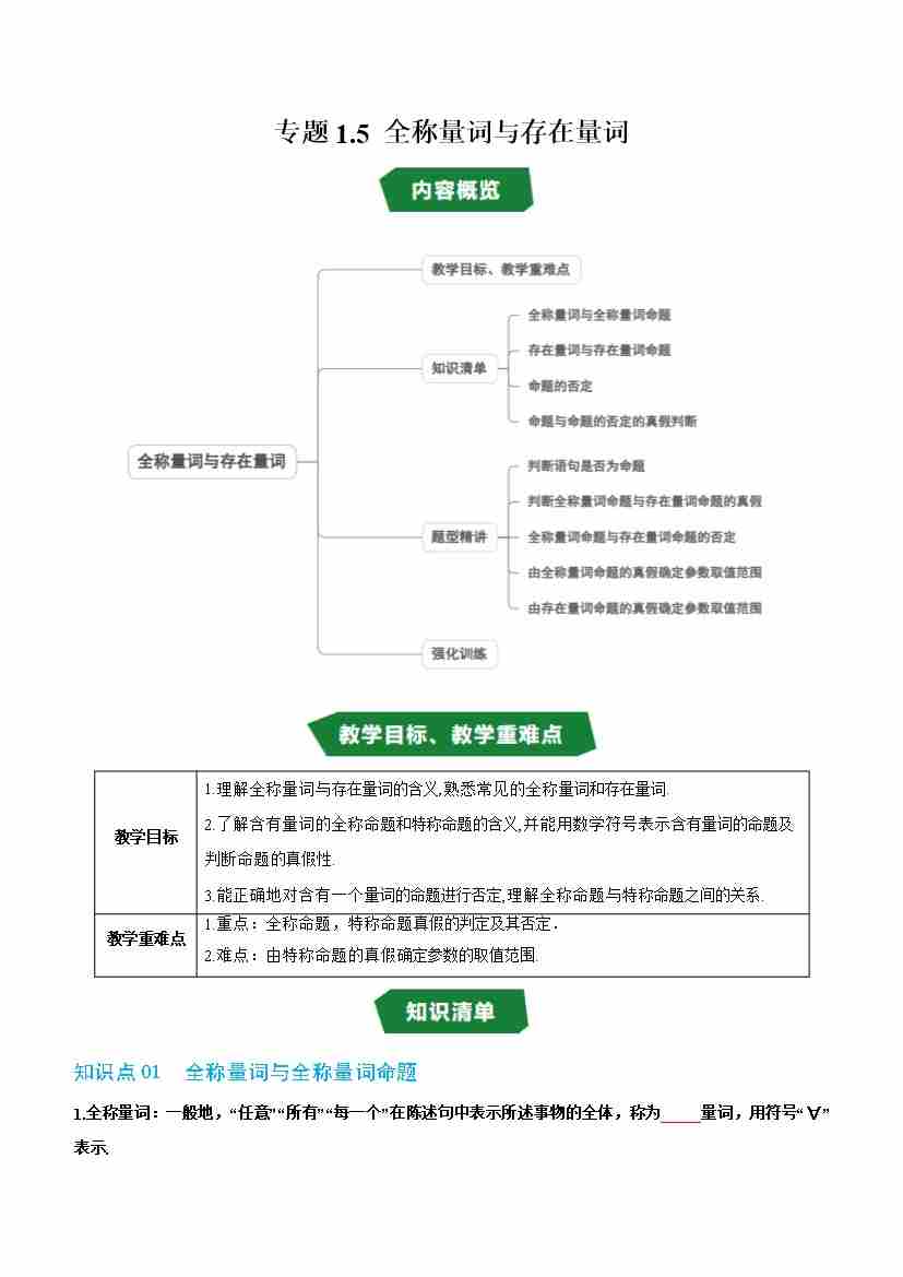 专题1.5 全称量词与存在量词(高效培优讲义)(只有学生版缺教师版)
