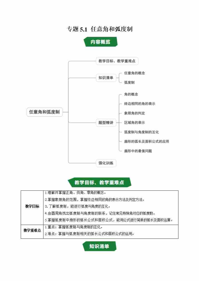 专题5.1 任意角和弧度制(高效培优讲义)(原卷版)