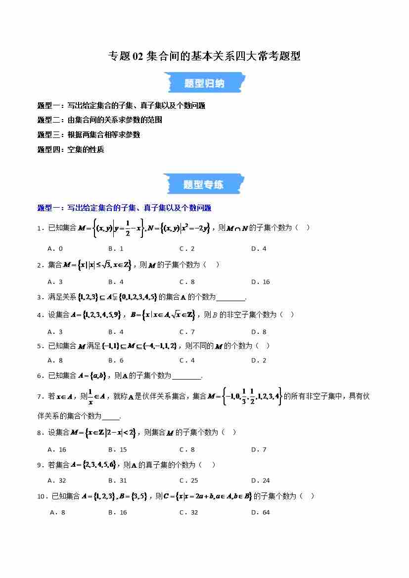 专题02集合间的基本关系四大常考题型(高效培优专项训练)(学生版)