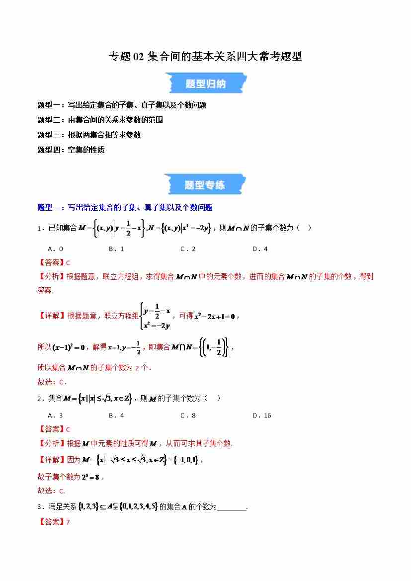 专题02集合间的基本关系四大常考题型(高效培优专项训练)(教师版)