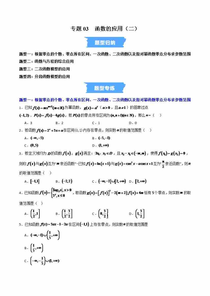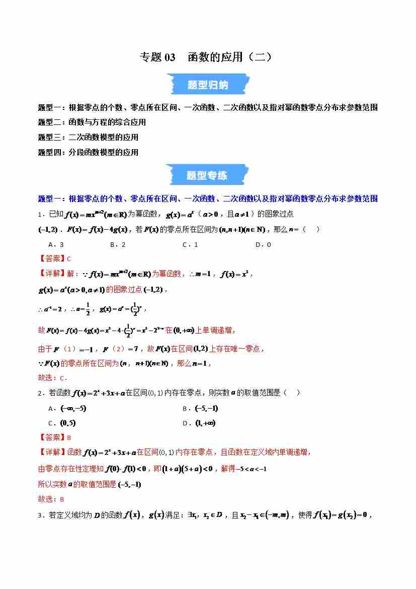 专题03 函数的应用(二)的四大常考题型(高效培优专项训练)(教师版)