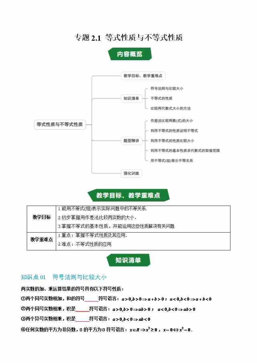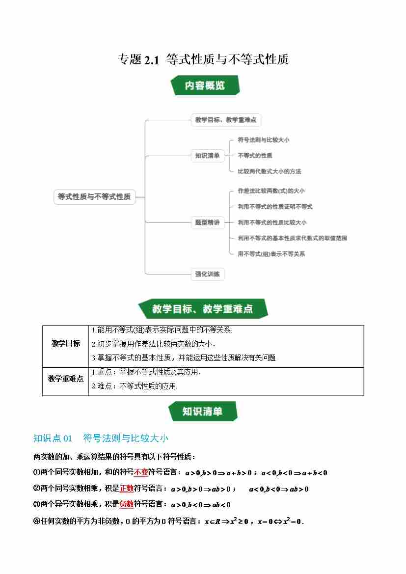 专题2.1 等式性质与不等式性质(高效培优讲义)(学生版)