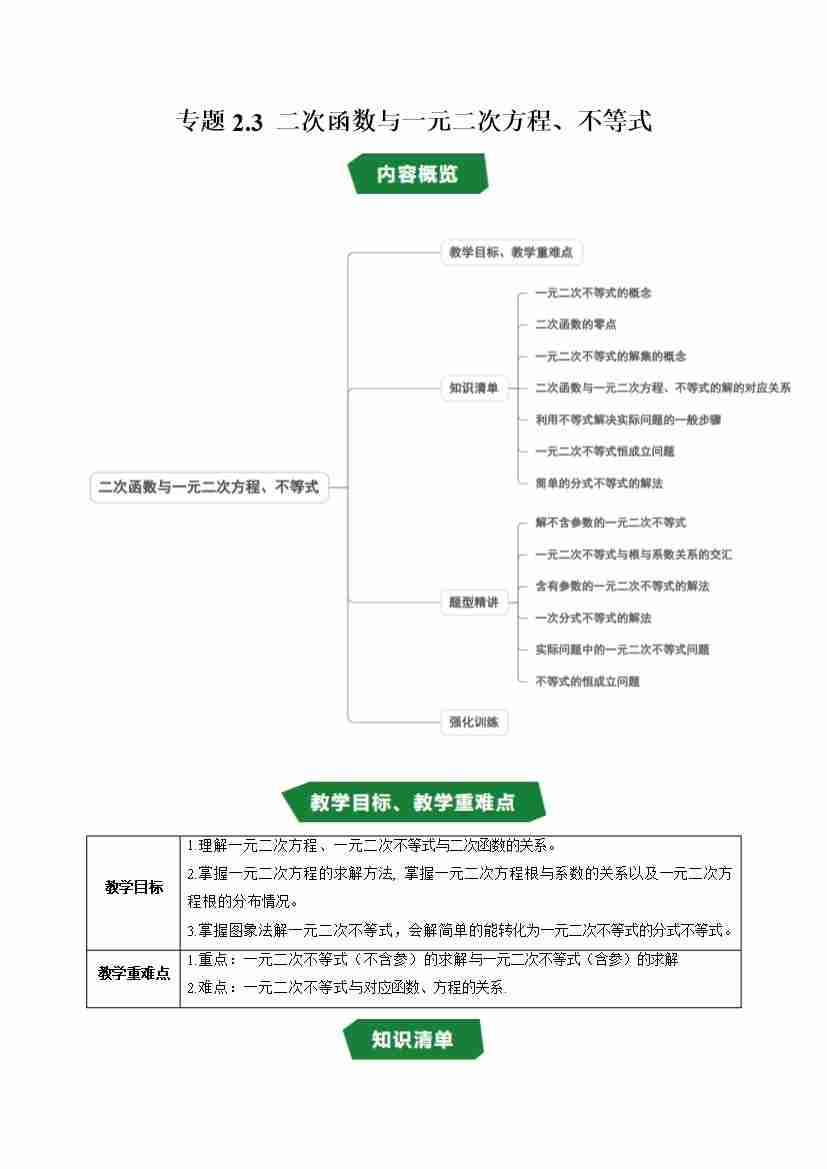 专题2.3 二次函数与一元二次方程、不等式(高效培优讲义)(学生版)