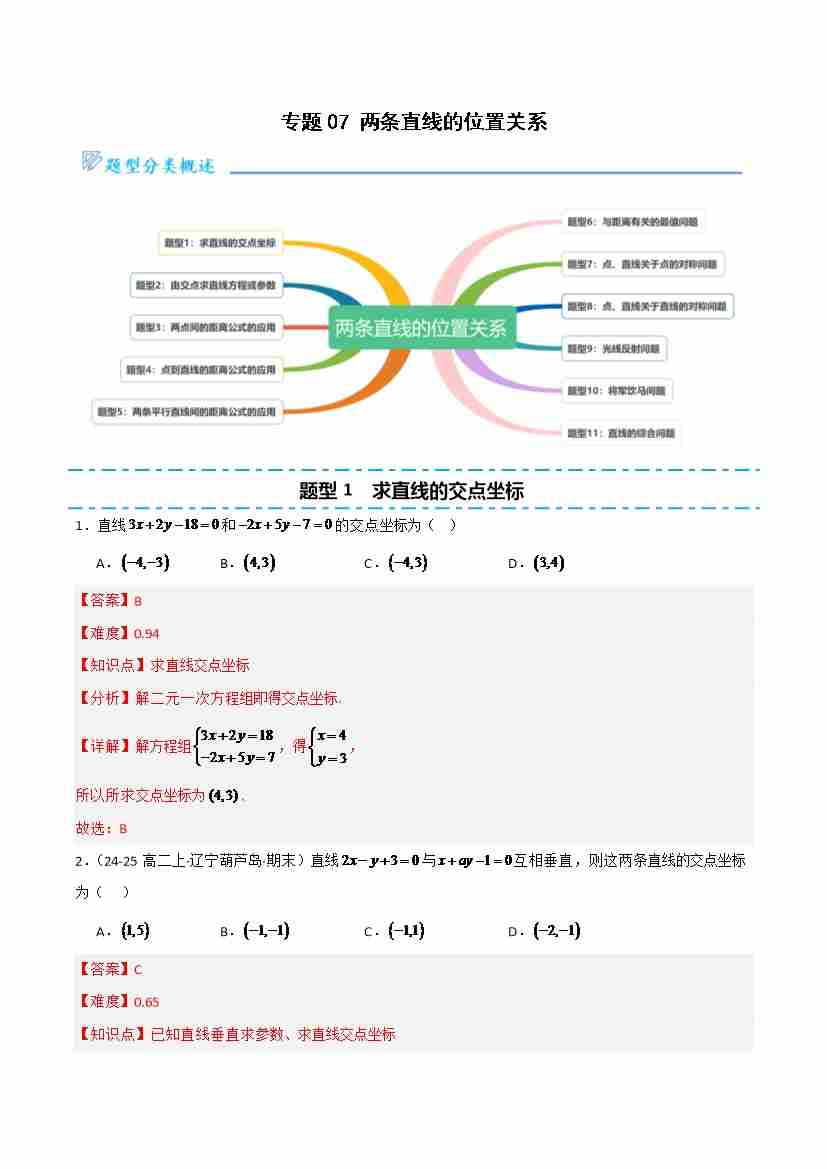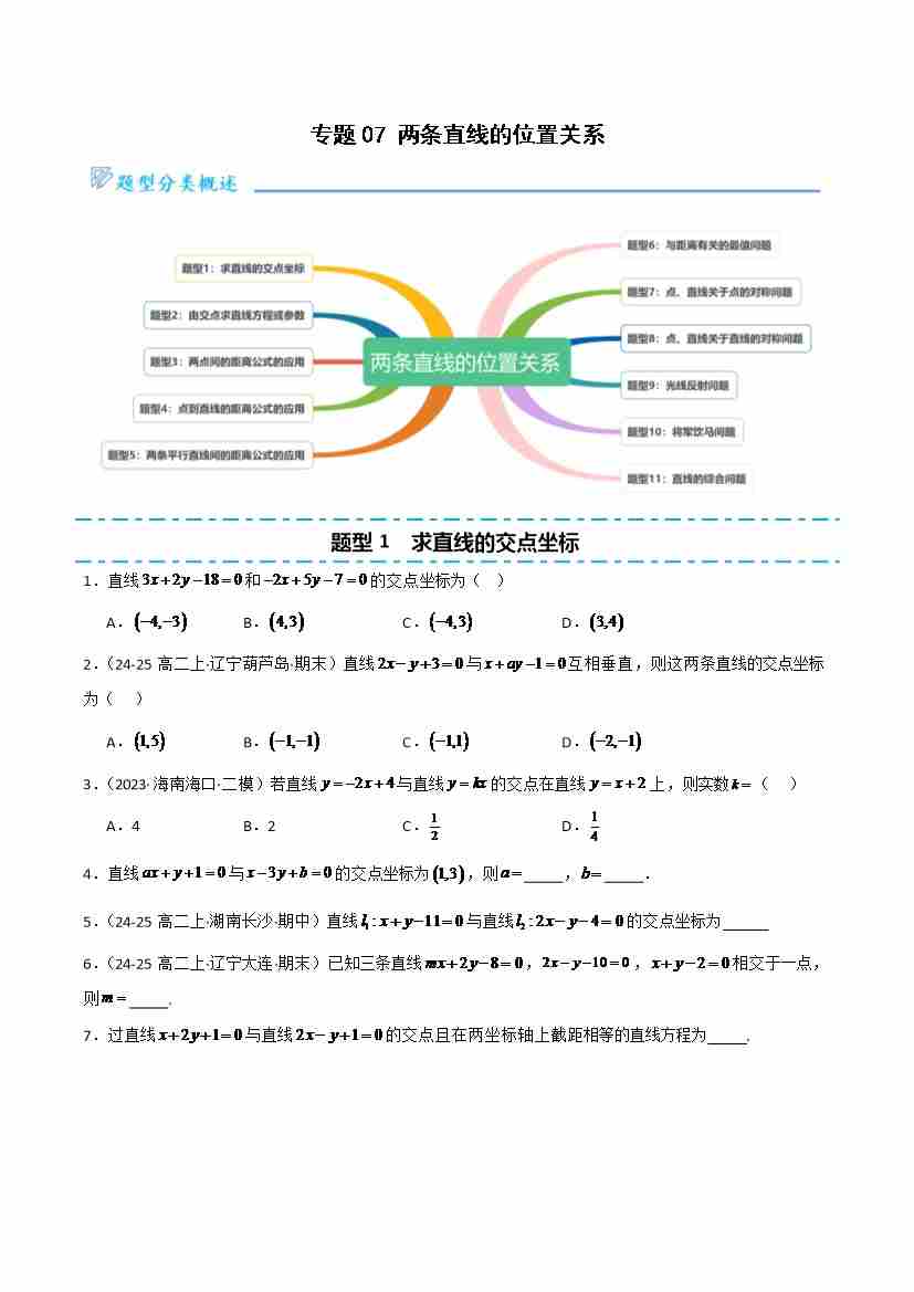 专题07 两条直线的位置关系(十一大题型精练)学生版