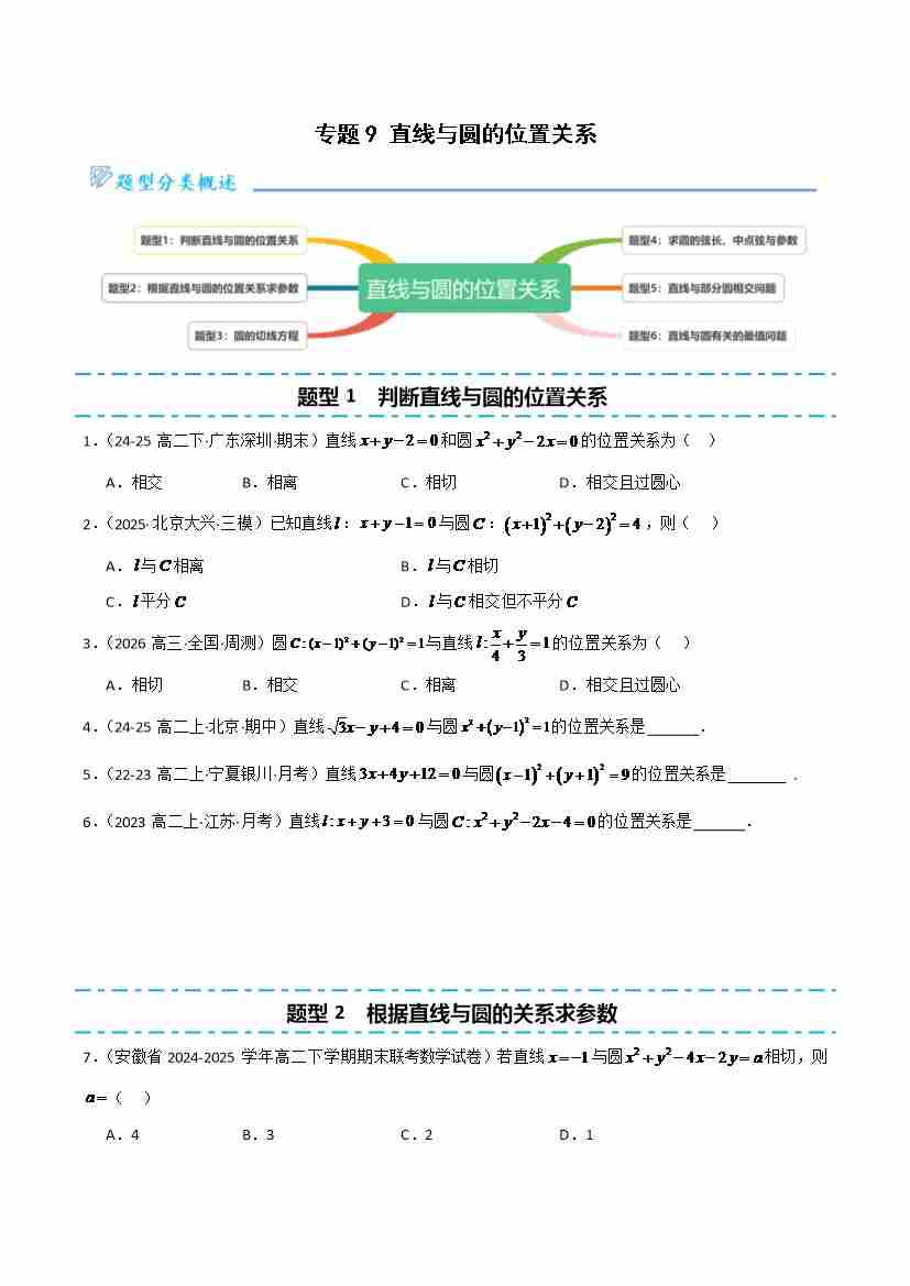 专题09 直线与圆的位置关系(六大题型精练)学生版