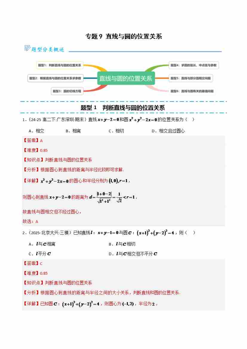 专题09 直线与圆的位置关系(六大题型精练)教师版