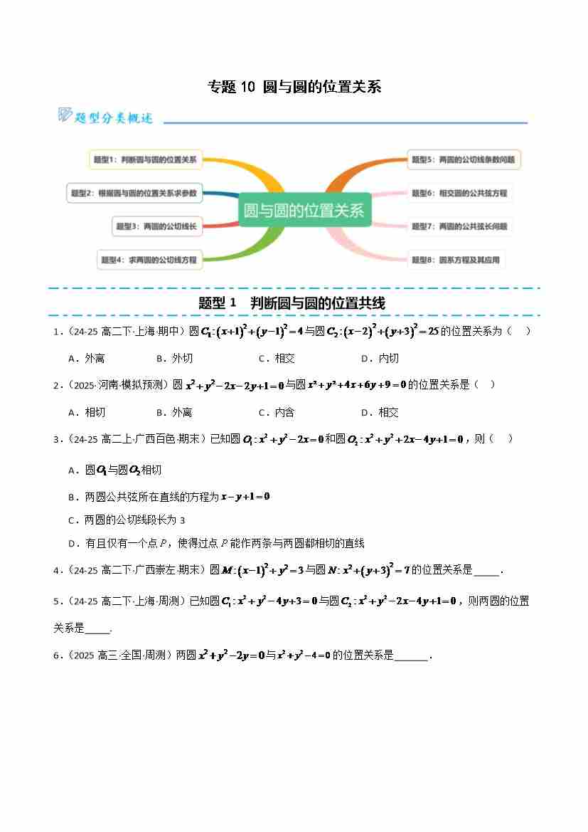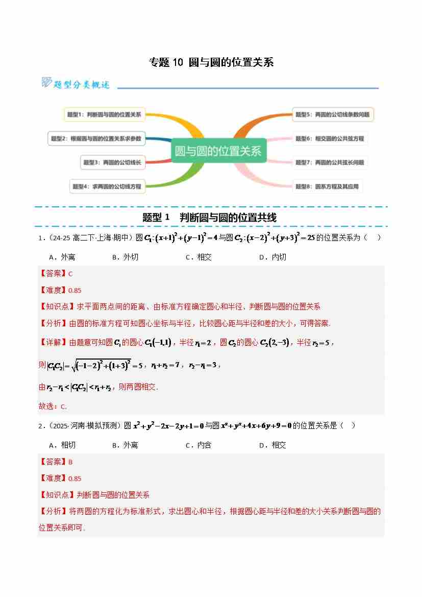 专题10 圆与圆的位置关系(八大题型精练)教师版
