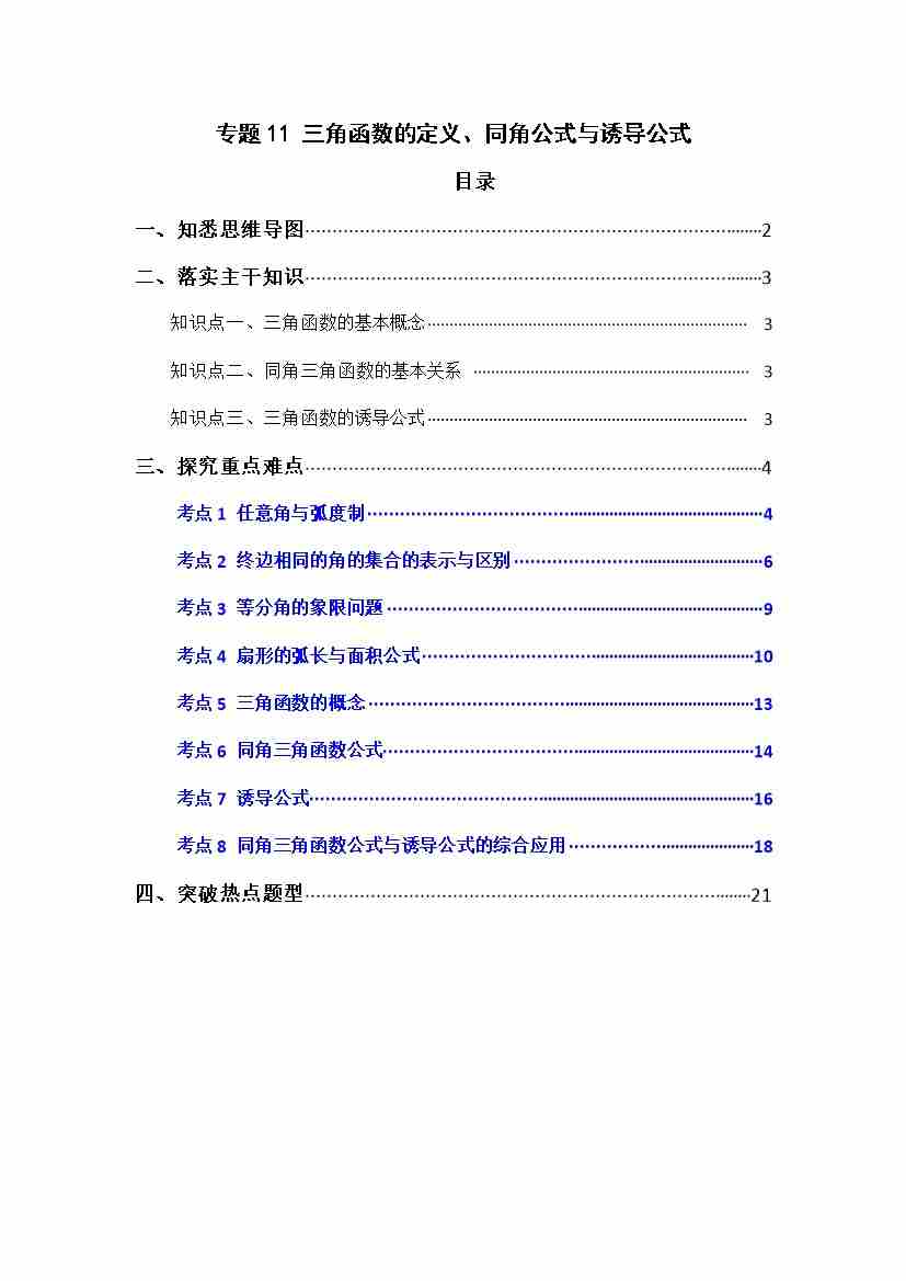 专题11 三角函数的定义、同角公式与诱导公式(八大考点精讲)学生版