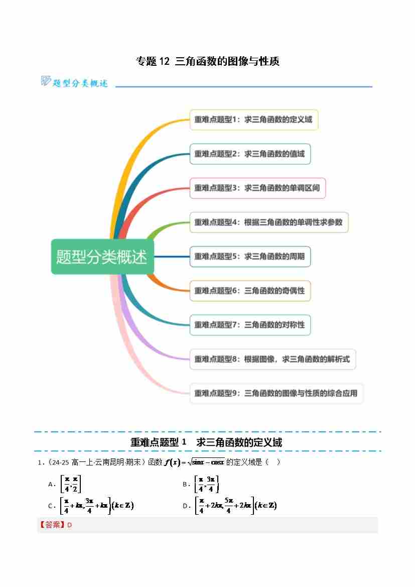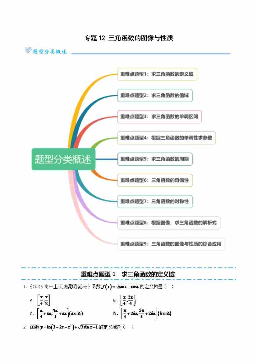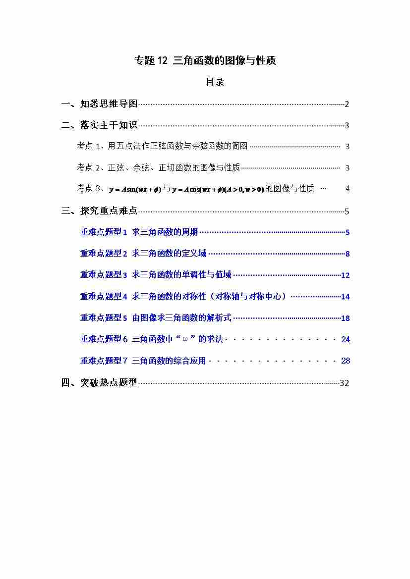 专题12 三角函数的图像与性质(7大考点精讲)学生版