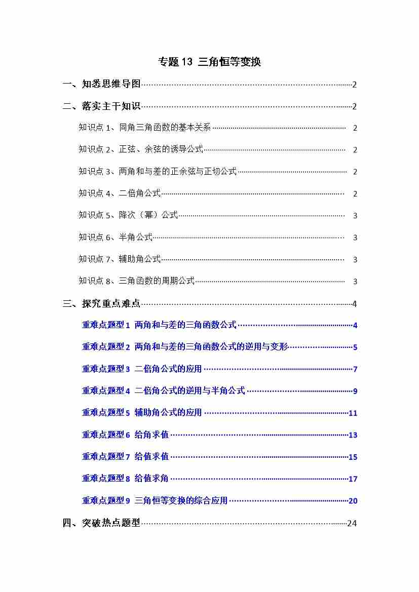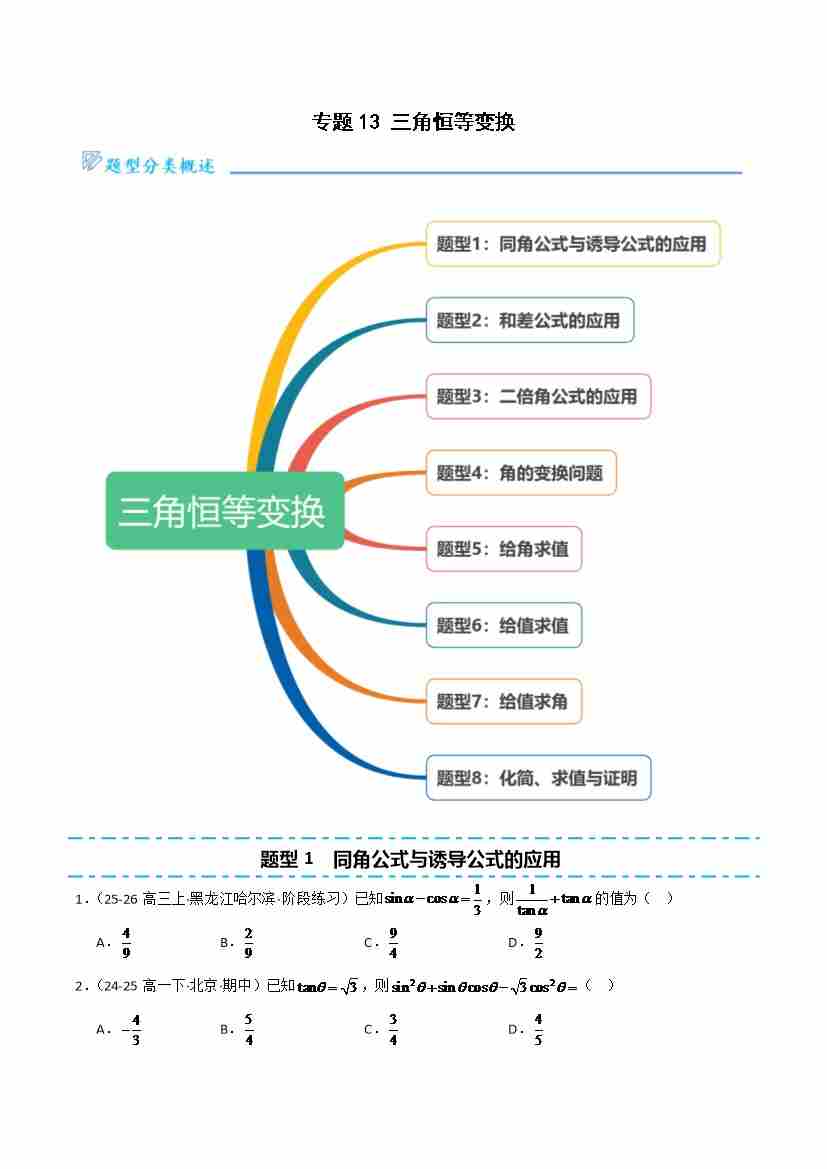 专题13 三角恒等变换(九大考点精讲)(学生版)