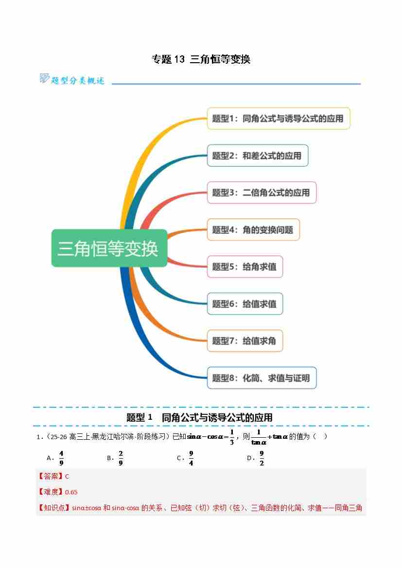 专题13 三角恒等变换(九大考点精讲)(教师版)