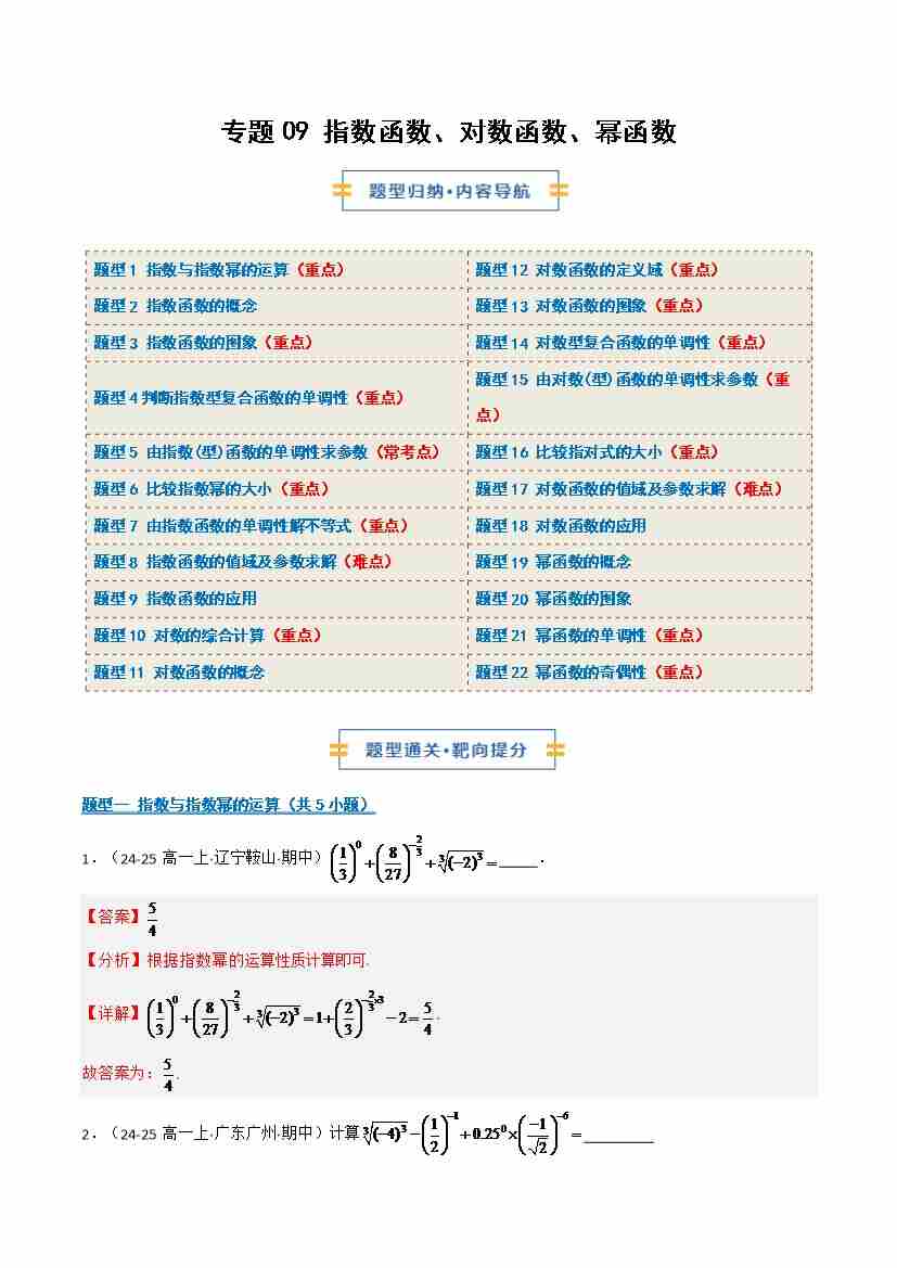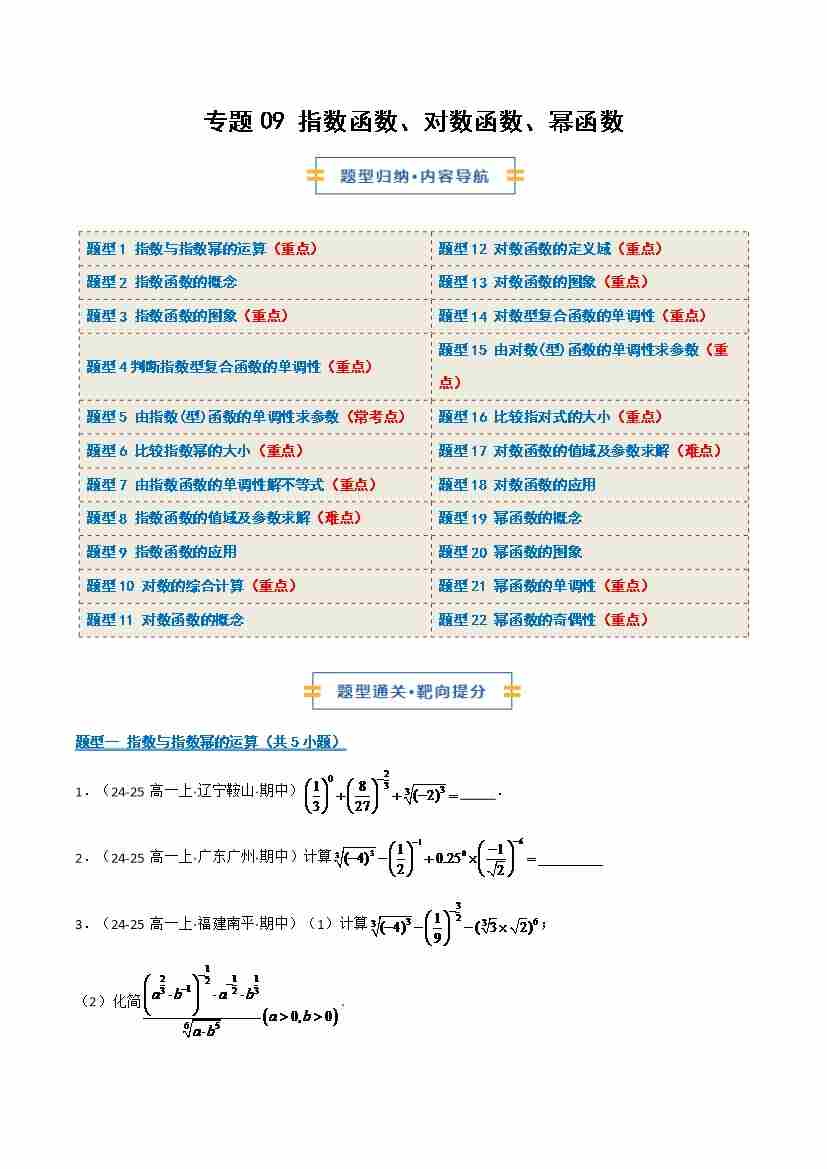 专题09 指数函数、对数函数、幂函数22大题型85题(期中专项训练)(学生版)