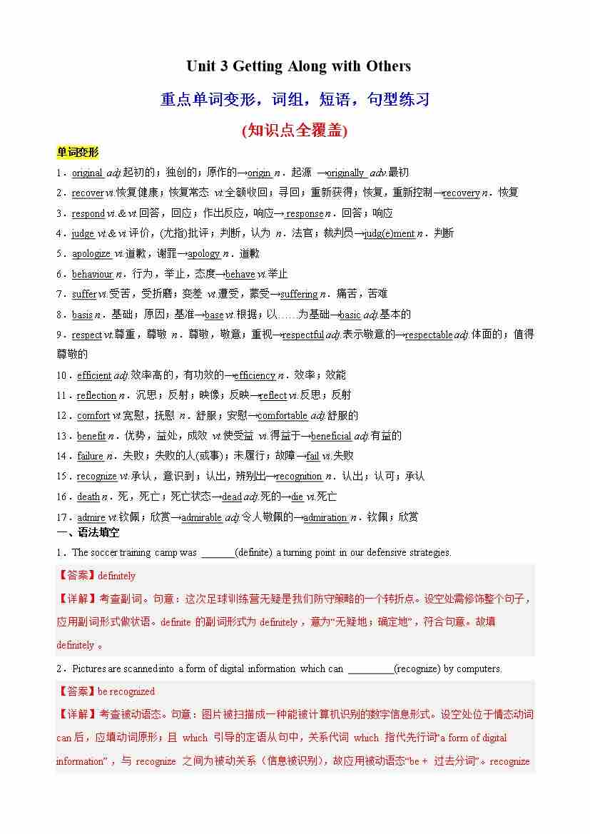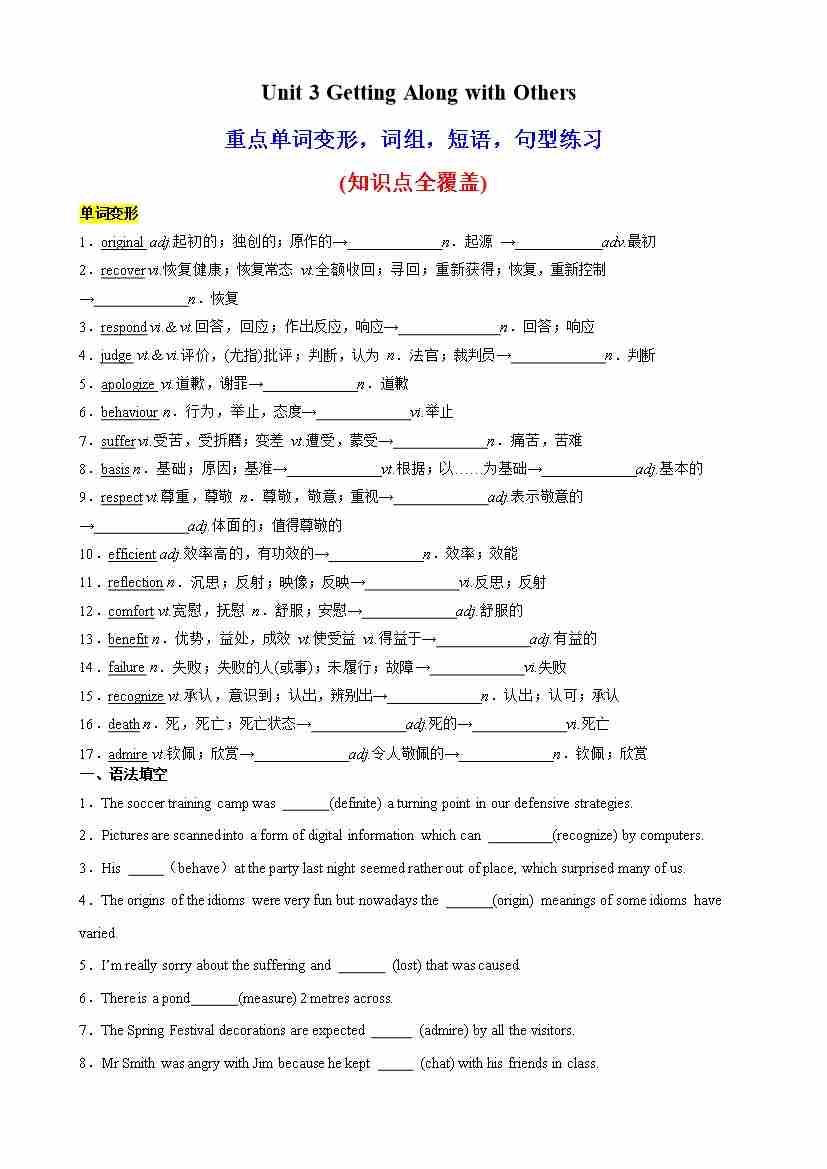 Unit 3 Getting Along with Others重点单词变形,词汇,语法,知识点复习题(学生版)
