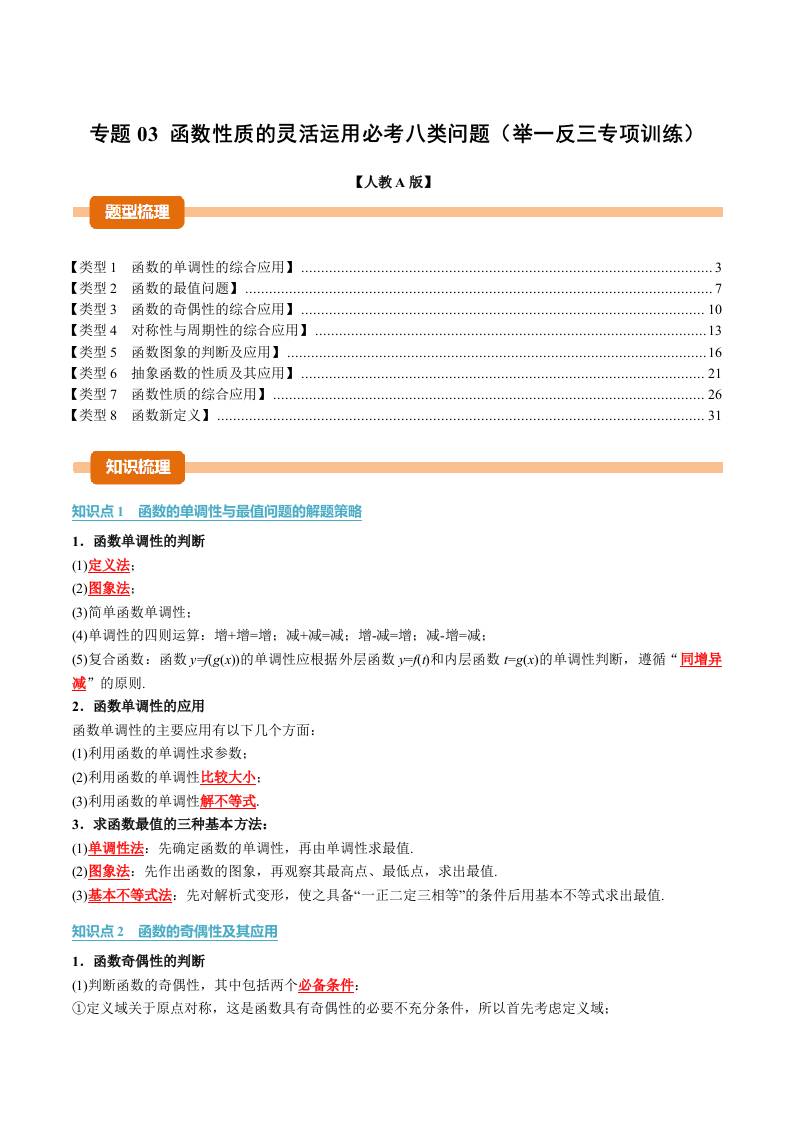 专题03 函数性质的灵活运用必考八类问题(举一反三专项训练)(教师版)