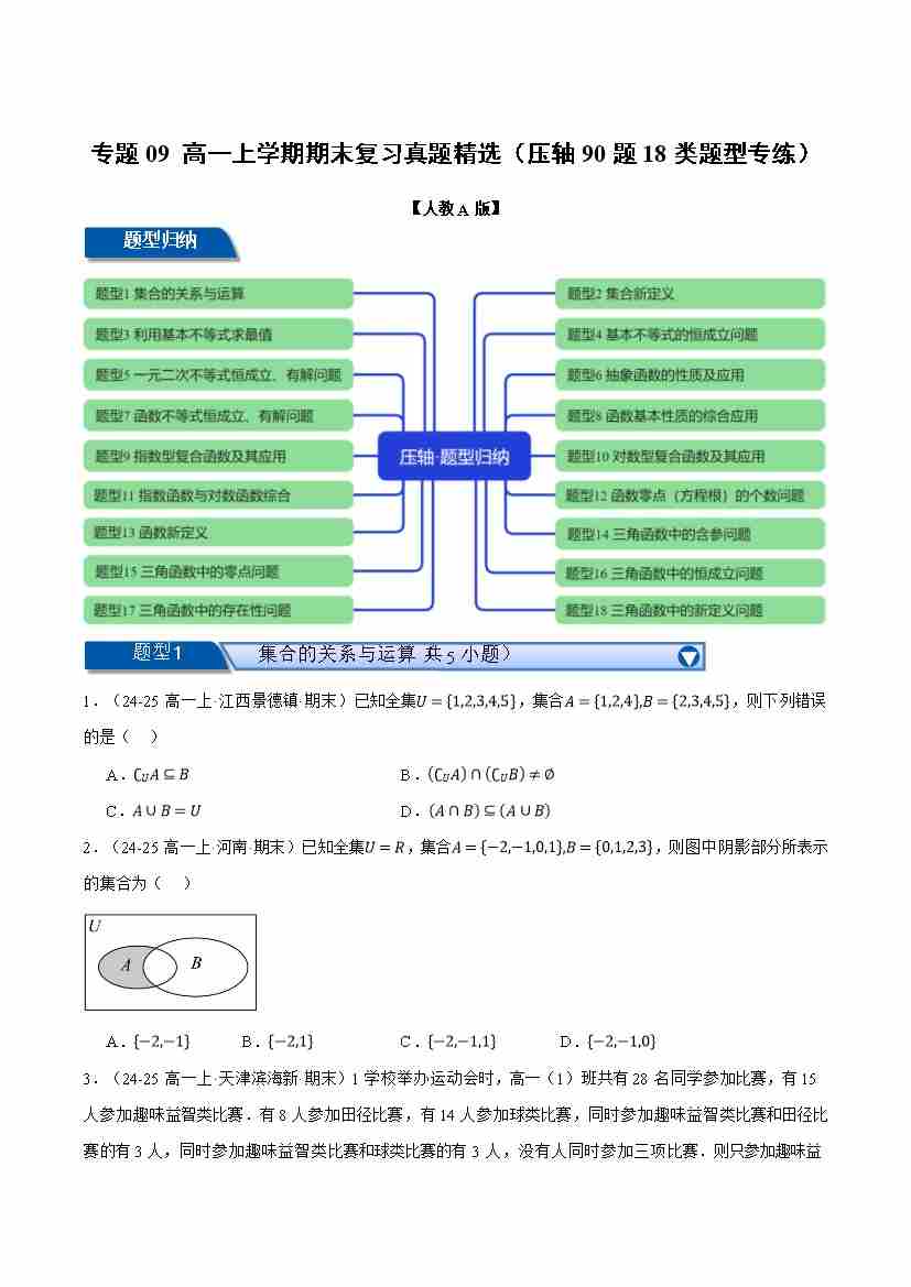 专项训练:集合与常用逻辑用语综合大题分类精练30题(6大题型)(解析版)