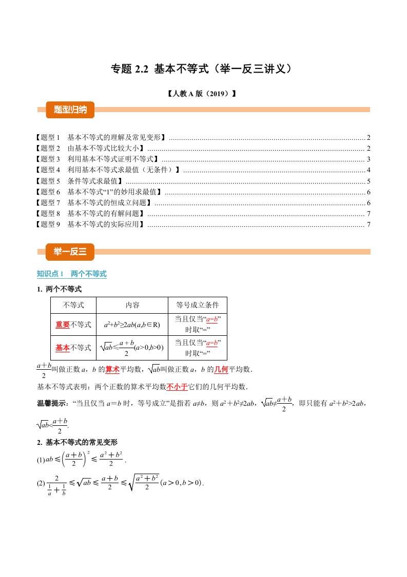 专题2.2 基本不等式(举一反三讲义)(学生版)