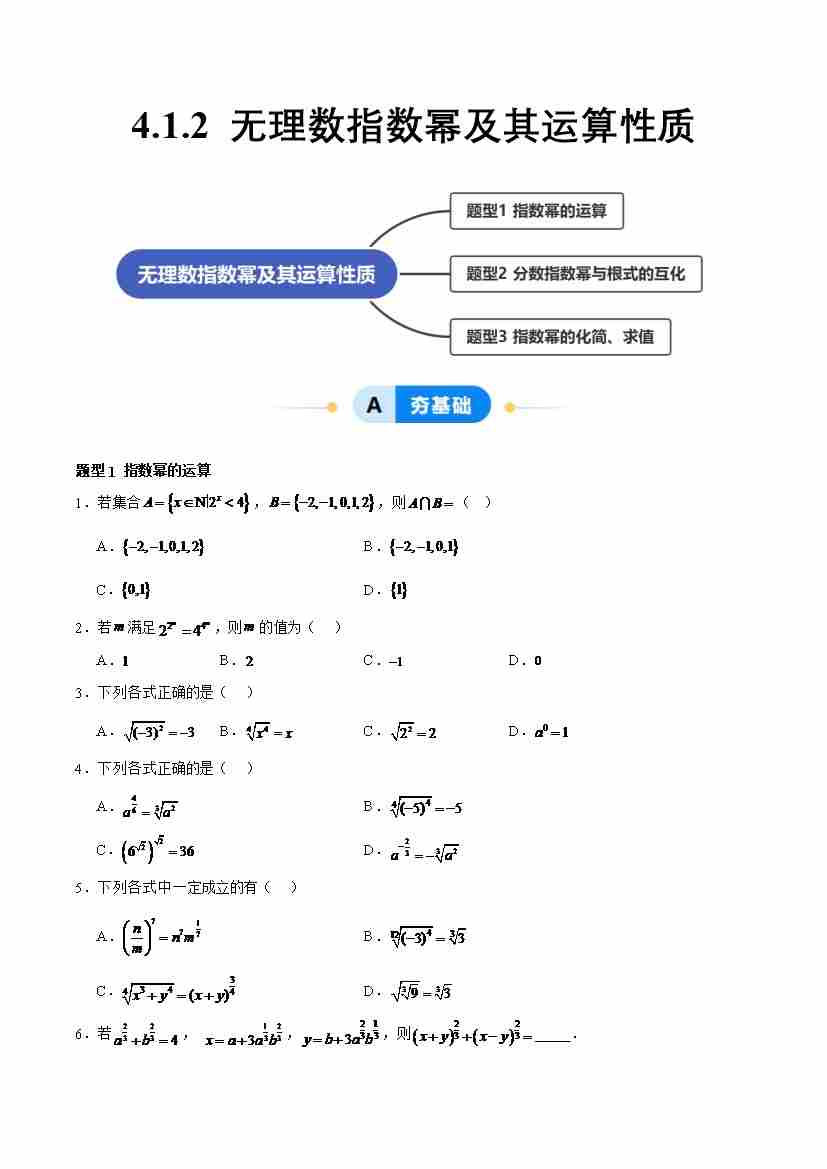 4.1.2 无理数指数幂及其运算性质(分层作业,3大题型)(原卷版)