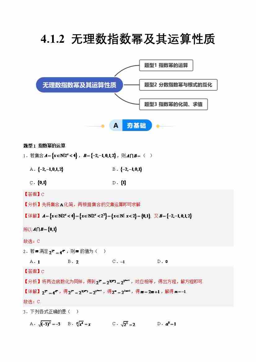 4.1.2 无理数指数幂及其运算性质(分层作业,3大题型)(解析版)