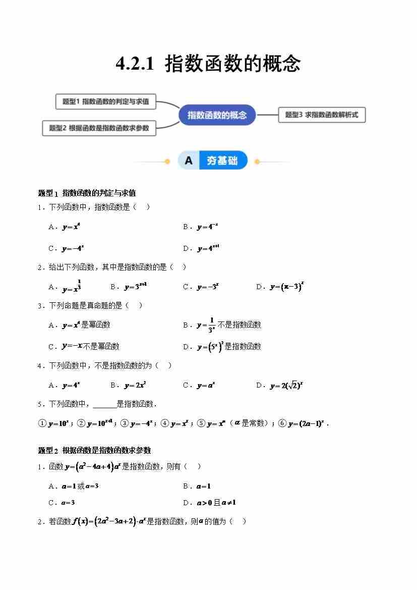 4.2.1 指数函数的概念(分层作业,3大题型)(原卷版)