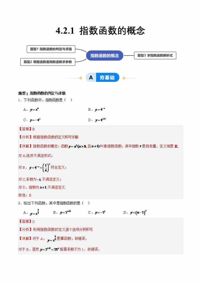 4.2.1 指数函数的概念(分层作业,3大题型)(解析版)