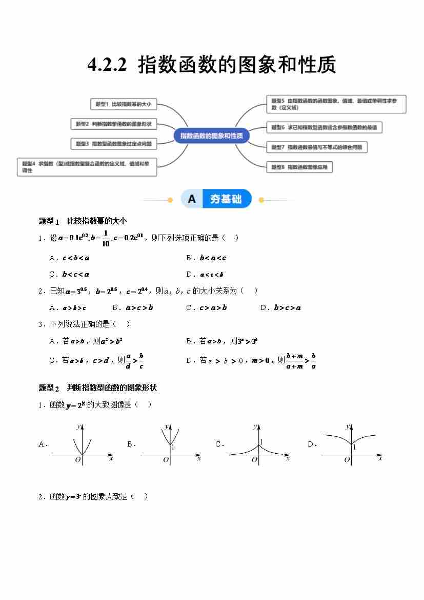 4.2.2 指数函数的图象和性质(分层作业,8大题型)(原卷版)