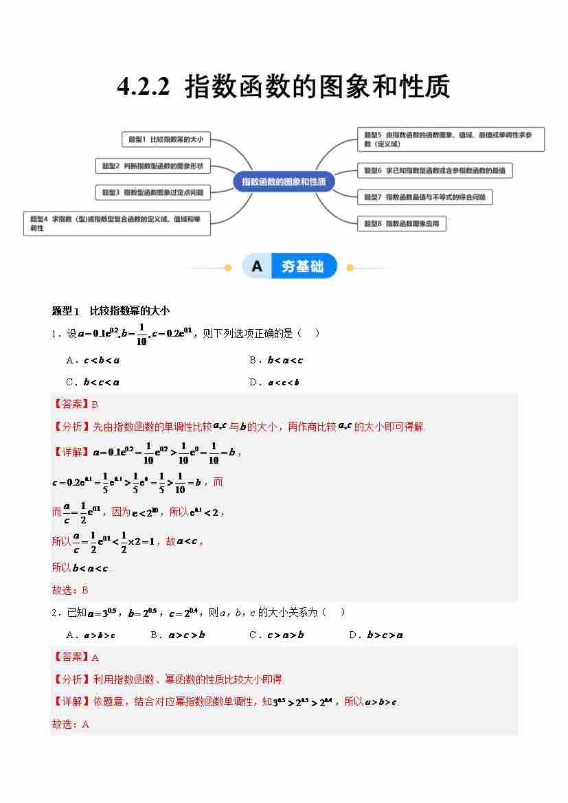 4.2.2 指数函数的图象和性质(分层作业,8大题型)(解析版)