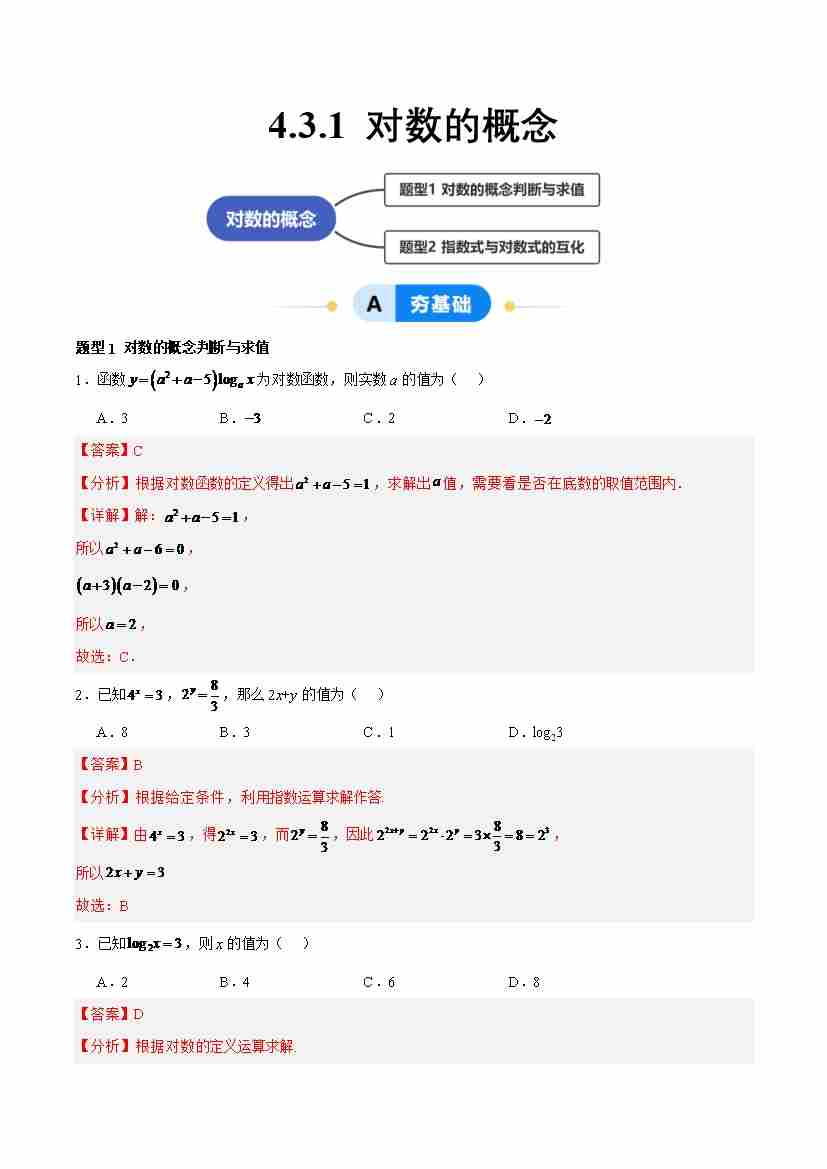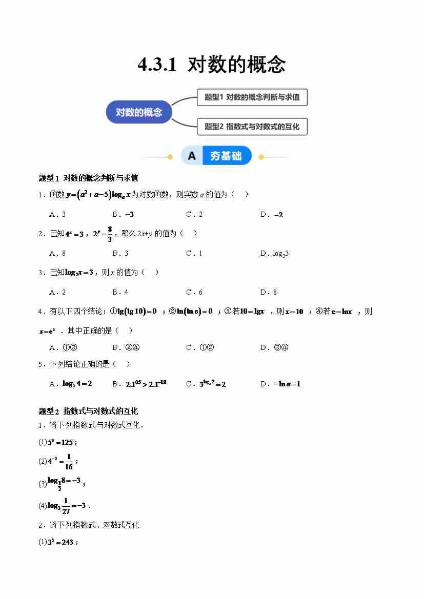 4.3.1 对数的概念(分层作业,2大题型)(原卷版)