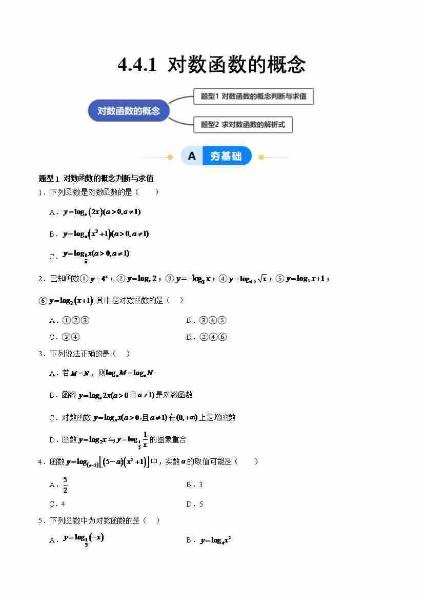 4.4.1 对数函数的概念(分层作业,2大题型)(原卷版)