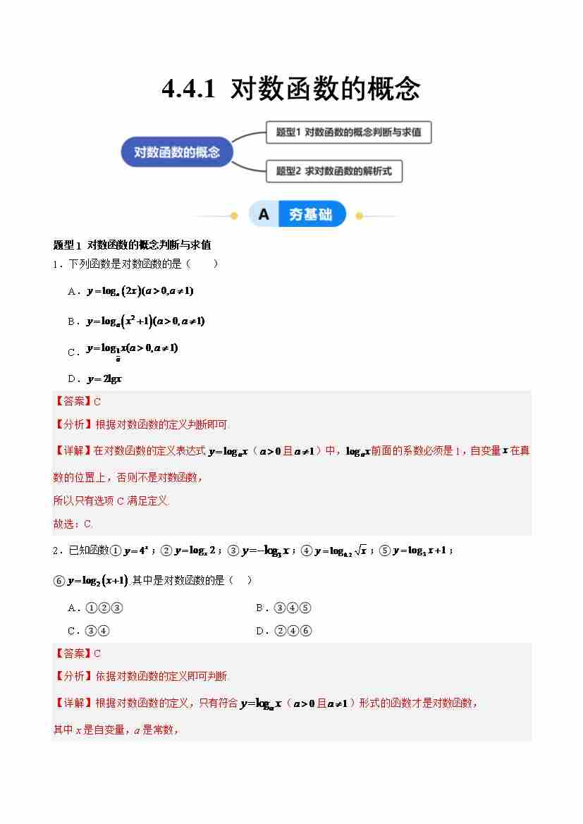 4.4.1 对数函数的概念(分层作业,2大题型)(解析版)