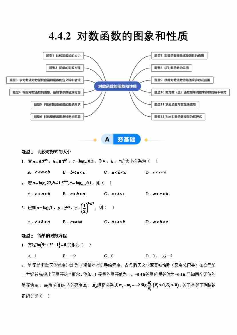 4.4.2 对数函数的图象和性质(分层作业,12大题型)(原卷版)