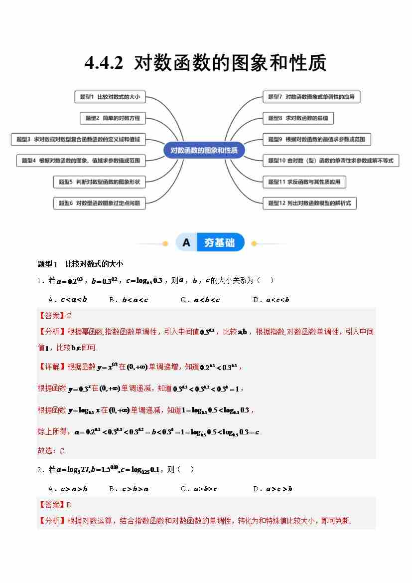 4.4.2 对数函数的图象和性质(分层作业,12大题型)(解析版)