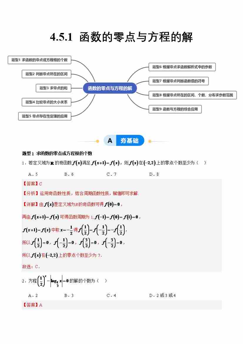 4.5.1 函数的零点与方程的解(分层作业,9大题型)(解析版)