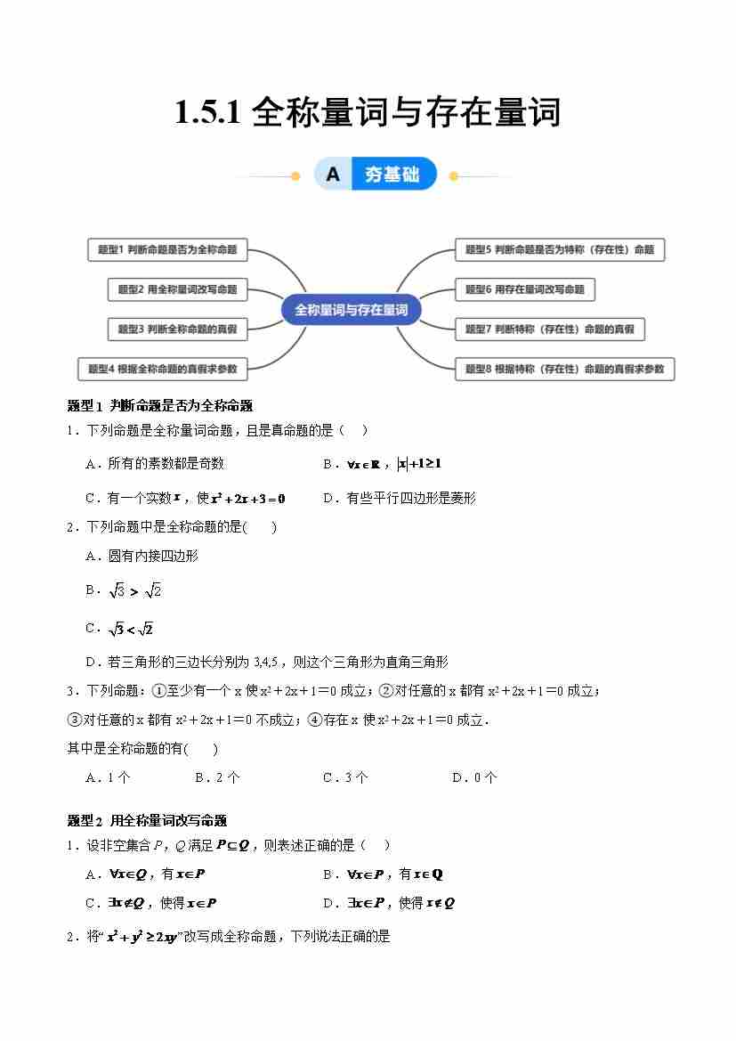 1.5.1 全称量词与存在量词(分层作业, 8大题型)(原卷版)