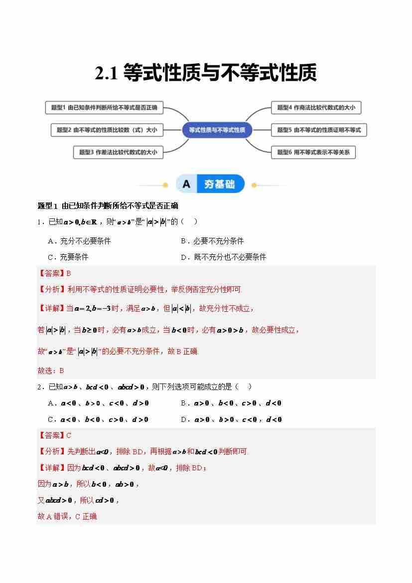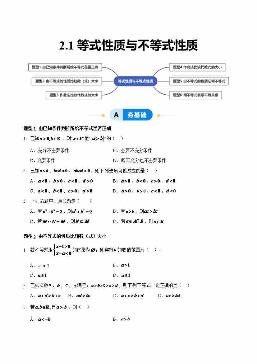 2.1 等式性质与不等式性质(分层作业,6大题型)(原卷版)