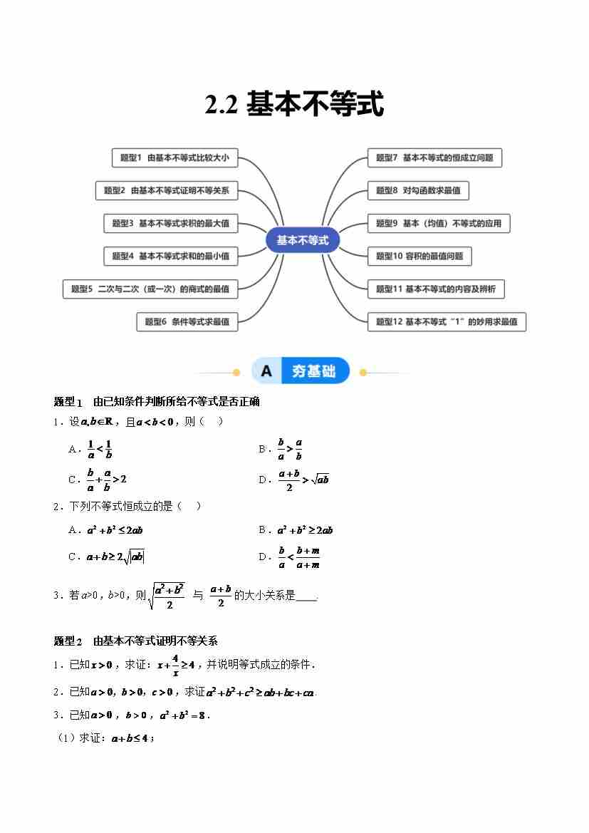 2.2 基本不等式(分层作业,12大题型)(原卷版)