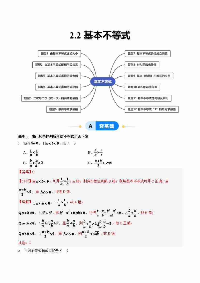 2.2 基本不等式(分层作业,12大题型)(解析版)