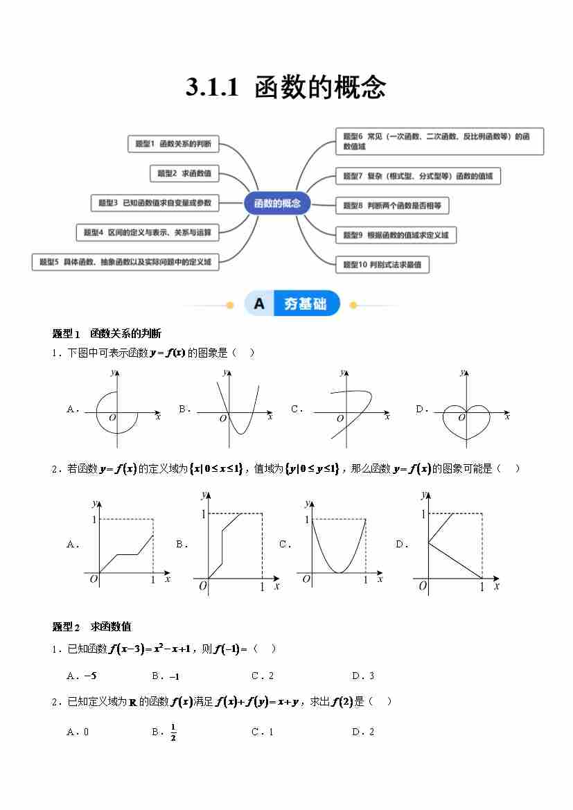 3.1.1 函数的概念(分层作业,10大题型)(原卷版)