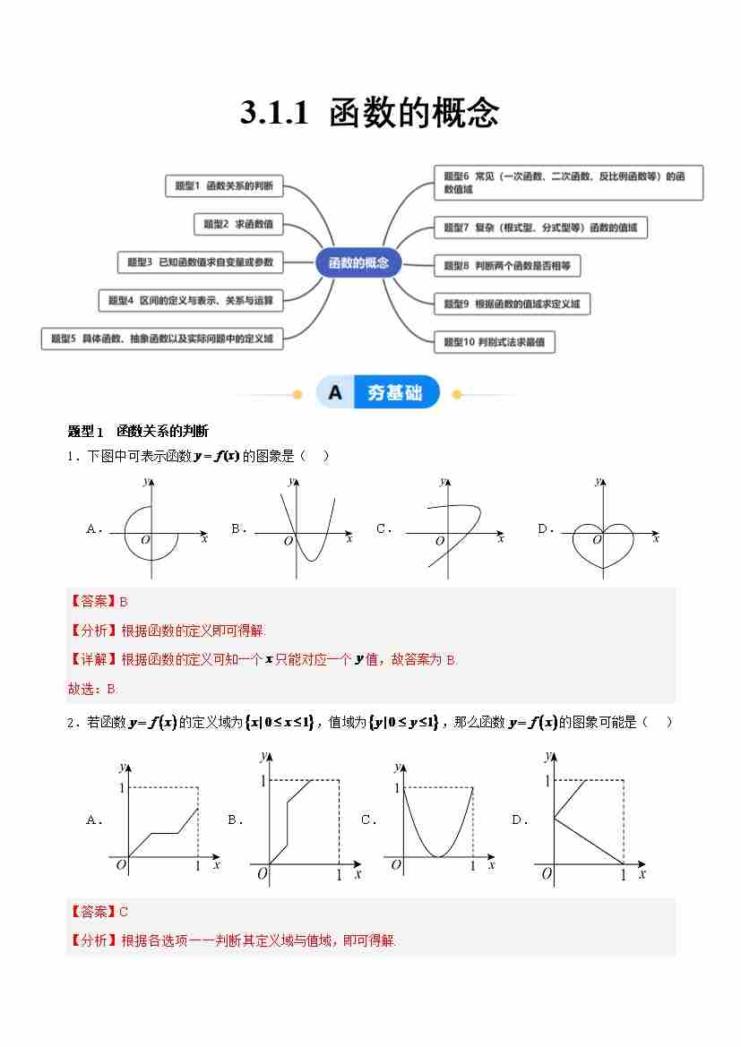 3.1.1 函数的概念(分层作业,10大题型)(解析版)