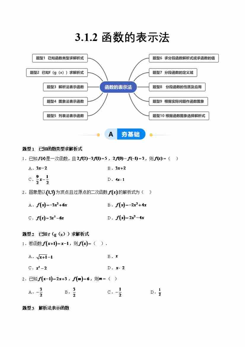 3.1.2 函数的表示法(分层作业,10大题型)(原卷版)