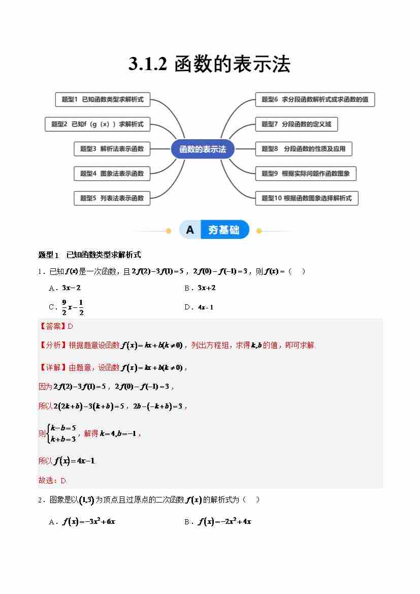 3.1.2 函数的表示法(分层作业,10大题型)(解析版)