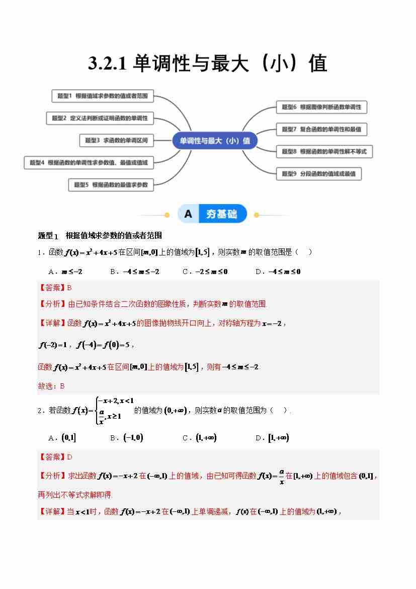 3.2.1 单调性与最大(小)值(分层作业,9大题型)(解析版)