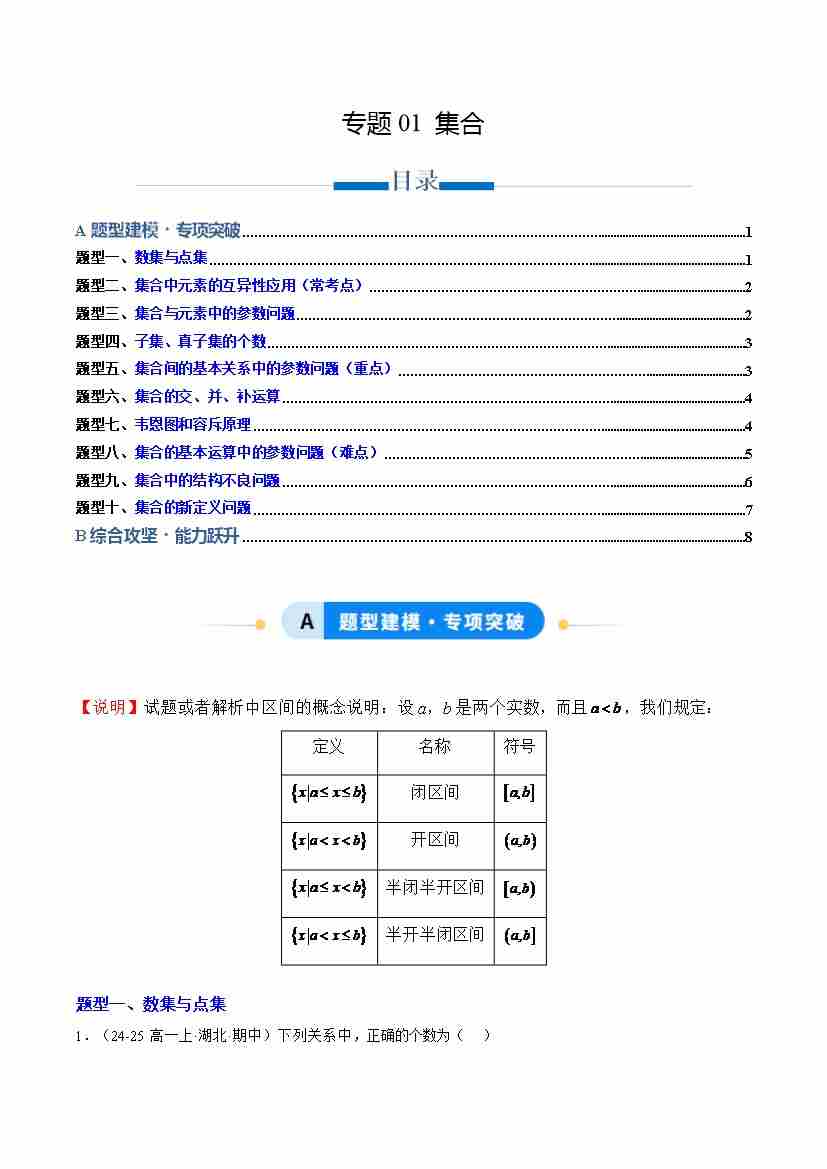 专题01 集合(专项训练10大重点题型)(学生版)