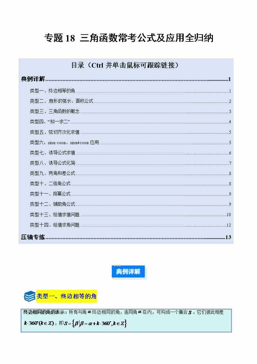 专题18 三角函数常考公式及应用全归纳(压轴题14大类型专项训练)(原卷版)