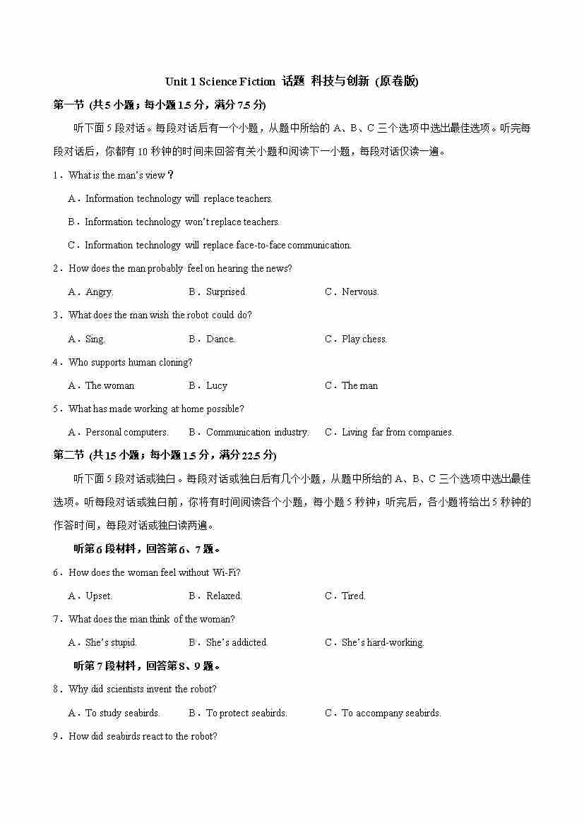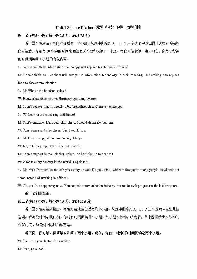 Unit 1 Science Fiction 话题 科技与创新 (教师版)