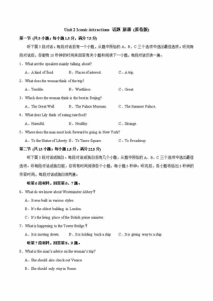 Unit 2 Iconic Attractions 话题 旅游 (学生版)