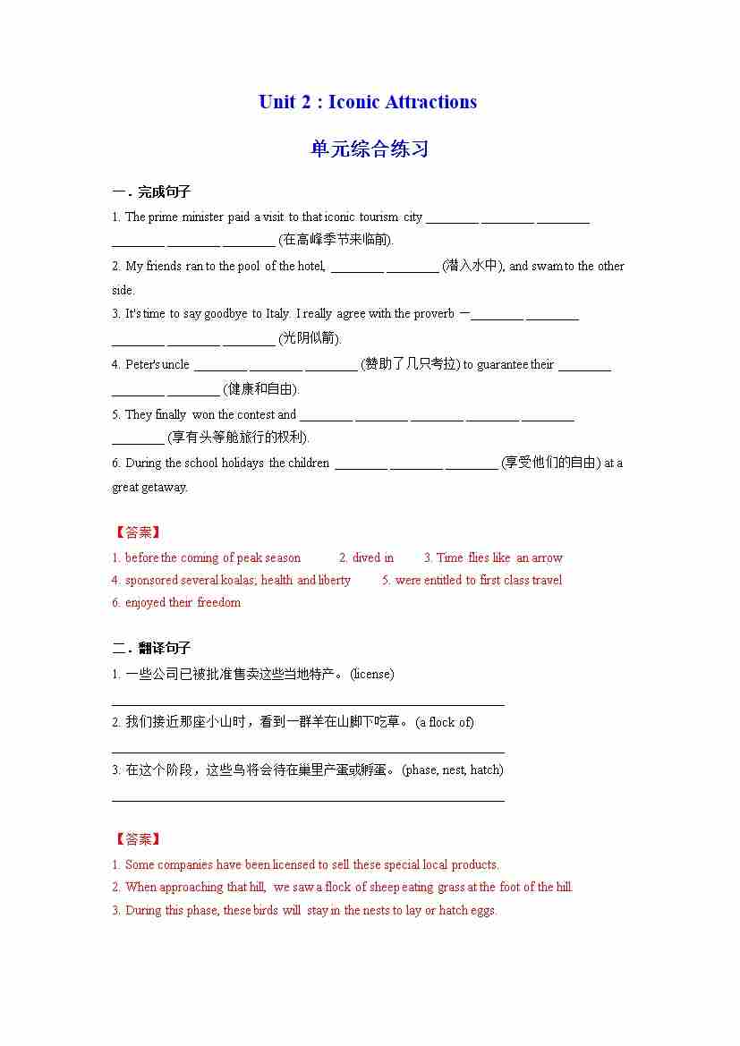 Unit 2 Iconic Attractions 单元综合练习 (解析版)---(人教版2019选择性必修第四册)