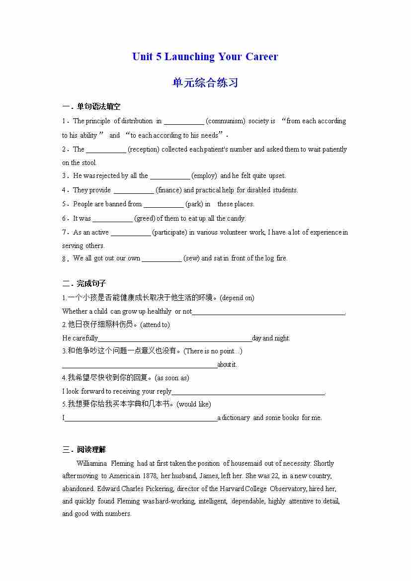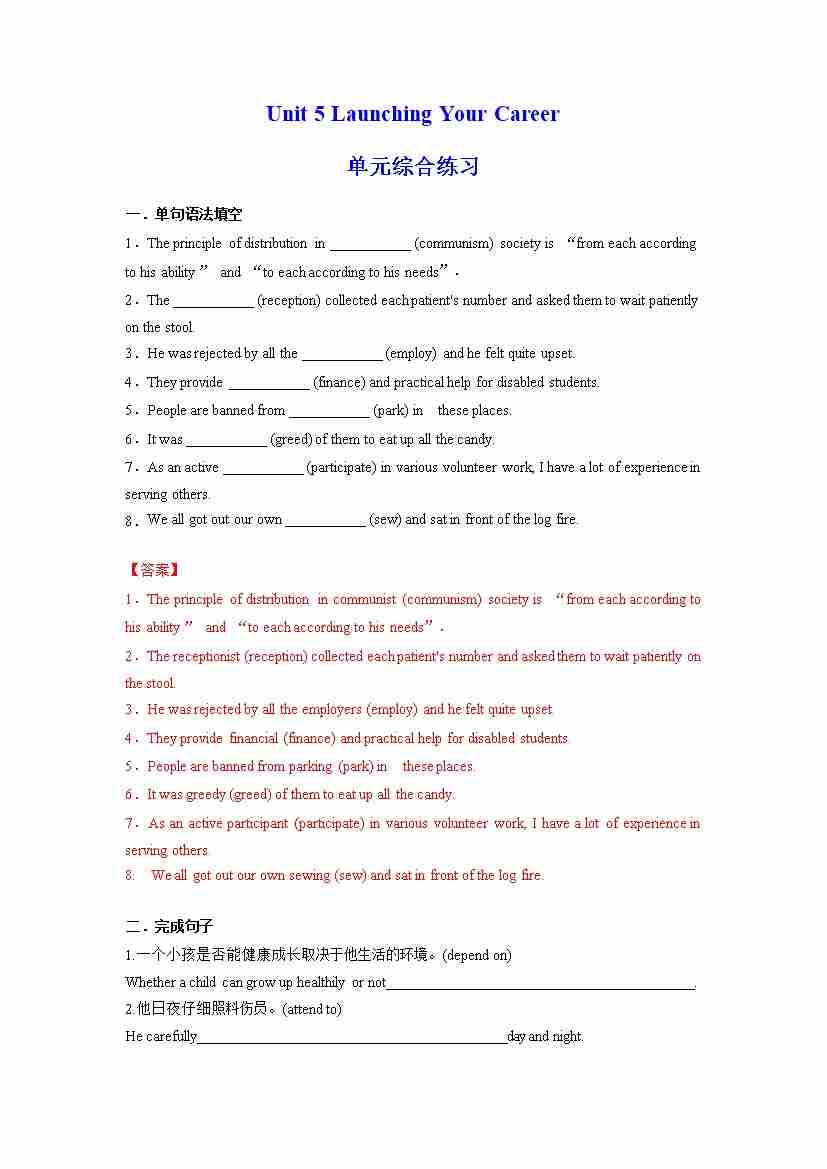 Unit 5 Launching Your Career 单元综合练习 (解析版)