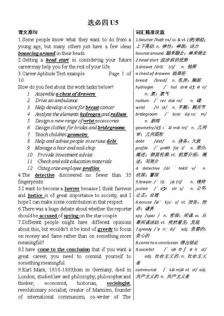Unit 5 Launching Your Career 课文句子记单词